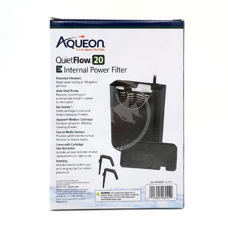 Aqueon Quiet Flow Internal Filters: Economical, efficient and easy to use describe this new internal power filter. For use with frameless or framed aquariums. Easy to position with suction cups or clips* filters can attach and hang on the aquarium rim. The filters provide chemical, biological* and mechanical* filtration (3G provides only chemical filtration).