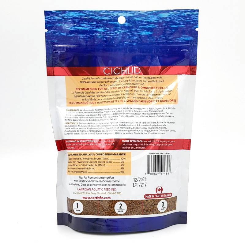 NorthFin Cichlid Formula. Premium fish food recommended for all types of carnivore & omnivore cichlids. Cichlid formula contains easily digestible all natural ingredients with 100% natural color enhancers. Specially formulated and well balanced diet for a wide variety of freshwater fish.