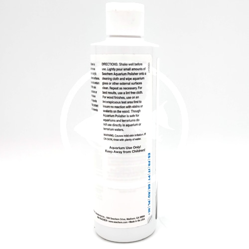 Seachem Aquarium Polisher is a multi-surface polisher for use on the exterior of glass or acrylic aquariums as well as other surfaces. Aquarium Polisher does not contain ammonia and is perfect for safe use on and around aquariums or terrariums. Aquarium Polisher easily removes mineral deposits and water spots and helps protect surfaces from dust, salt, minerals and finger prints.