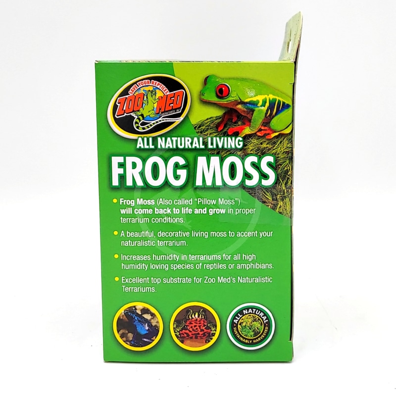 Zoo Med Natural Frog Moss 1.3L. Completely natural frog moss for use with frogs, toads, salamanders, garter or green snakes, and all other moss environment species. Use as a top substrate or decorative accent in vivarium/terrarium applications.