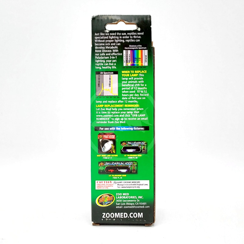 - The Paludarium 3 in 1 lamp, is a compact fluorescent that will offer beneficial UVB for a period of 12 months when used 10 to 12 hours per day.